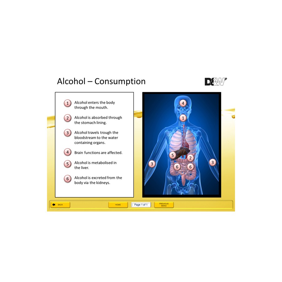 The D&Wp Alcohol Awareness PowerPoint Presentation is a valuable resource for pre and post testing and ensuring training objectives have been met. It is an ideal partner resource to the D&Wp V.I.S Box.