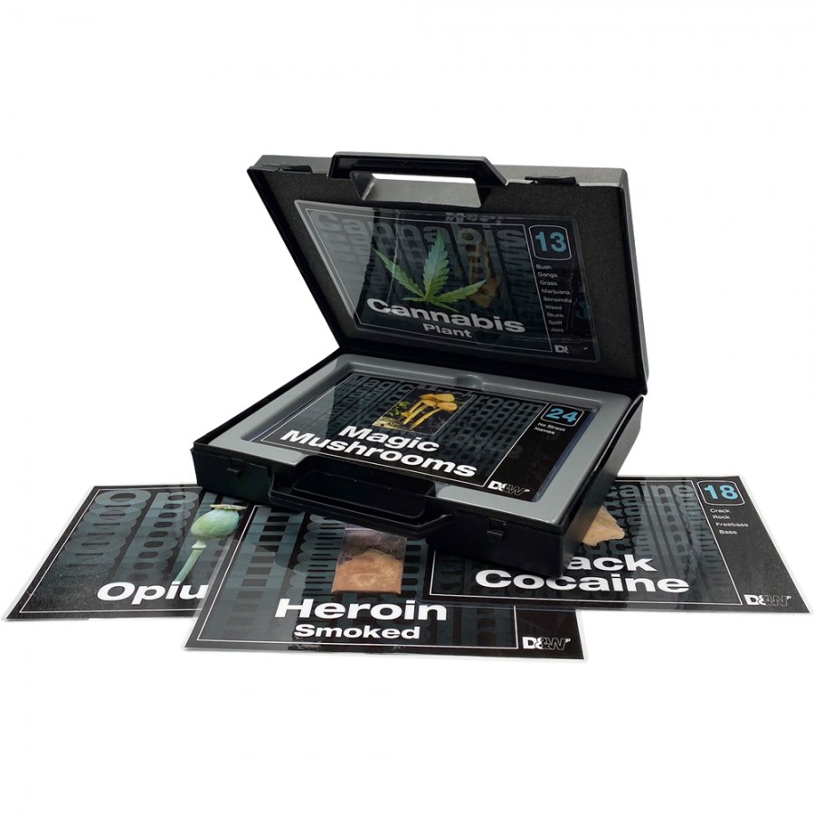 The fronts bear an image of the drug, its generic name and its street names. The reverse of each card bears a full drug description, its history, method of use, its effects and risks. Both sets combined comprise of 24 of the most common drugs (12 cards per set);