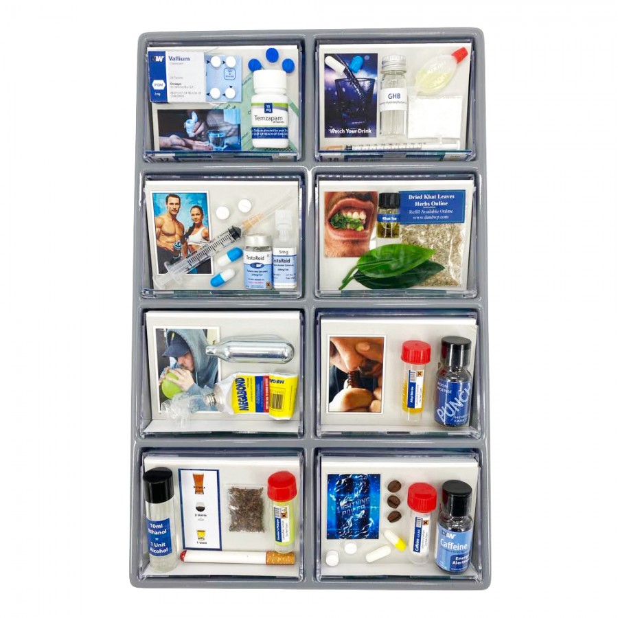 Includes an Upgraded V6 Drug Box, V2 S.I.D. Box, Flash Cards Sets 1 & 2 and access to the new online D&Wp Drug Awareness Resource Centre