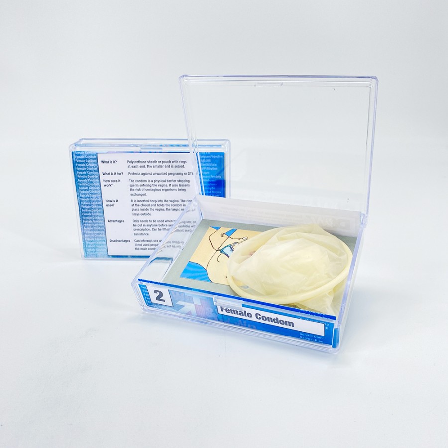 Crystal cases are numbered in the same sequence as the D&Wp Safer Sex Box V2.0. This enables an easy interchange of content to and from an existing Safer Sex Box containing the full range of imitation sexual health items.